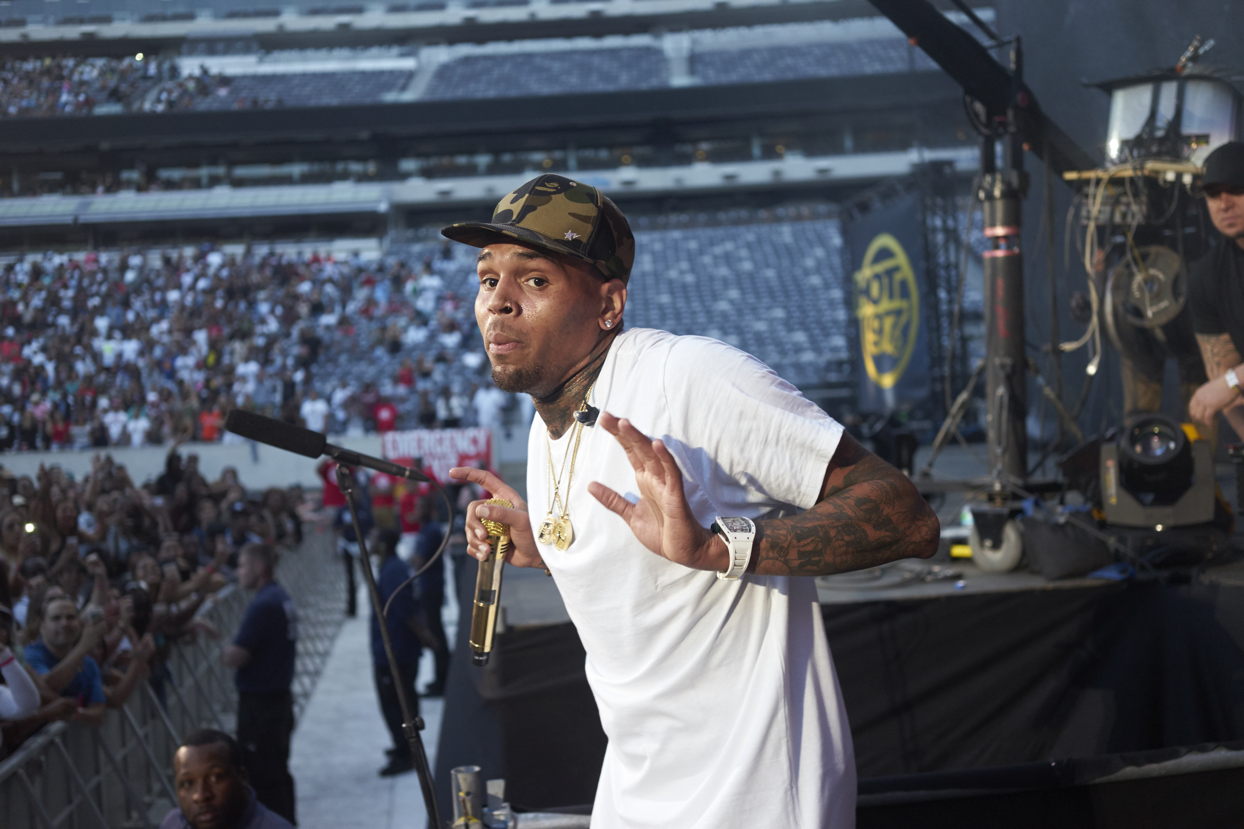 Since I don’t drive, I took the Hot97 Staff bus super super early in the AM. Being one of the first people there, I got to witness somethings most do. As I walked around an nearly empty MetLife Stadium i was able to watch a few sound checks.